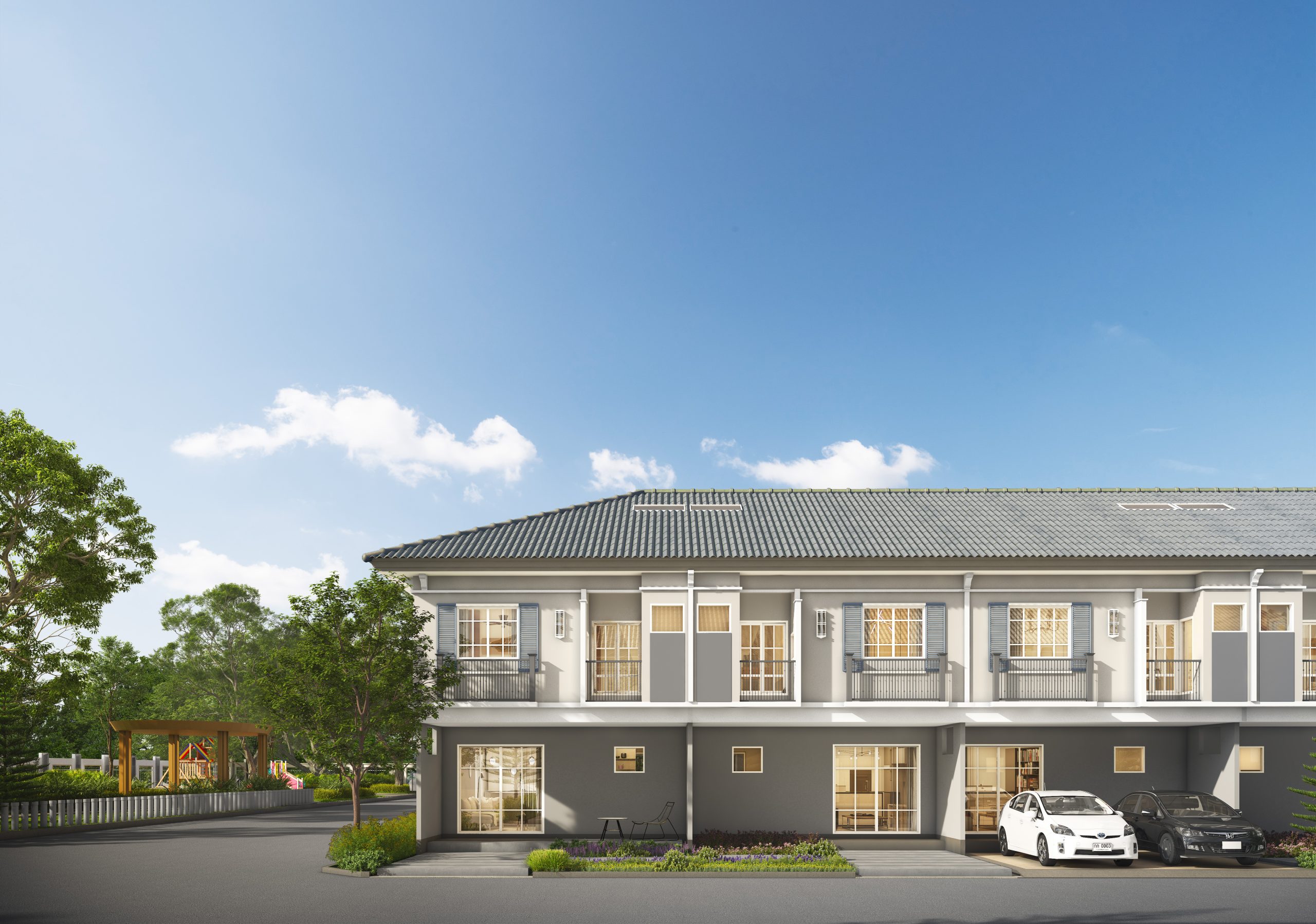 โครงการใหม่โซนรามอินทรา-คู้บอน38 ทาวน์โฮมหลังใหญ่ใกล้ JAS Green Village เพียง 200 เมตร ทาวน์โฮมสไตล์ English Garden 4 ห้องนอน 3 ห้องน้ำ จอดรถได้ 2 คัน หน้ากว้าง ถึง 6.5 เมตร พร้อมคลับเฮ้าส์ ฟิตเนส สระว่ายน้ำสำหรับผ่อนคลายในวันหยุด การเดินทางเชื่อมต่อได้หลายเส้นทางทั้ง ถ.รามอินทรา ถ.คู้บอน ทางด่วนจตุโชติ และรถไฟฟ้า